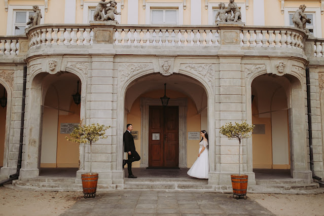 Wybraliśmy się również do Muzeum Czartoryskich w Puławach, bo park w tym miejscu (zwłaszcza jesienią), to również wdzięczne miejsce do zdjęć. Trafiliśmy też na ładne słoneczko, które dodatkowo ozłociło nam już jesiennie wyglądające drzewa. Przy okazji moja para dostała od przechodniów dużo uśmiechów i życzeń. Pamiętam jak sama jako dziecko przyglądałam się parom ślubnym gdzieś w górach podczas sesji plenerowych, a teraz sama zabieram moje pary na plenery i przyglądam się reakcji przechodniów. Bawiłam się super i zdjęcia wyszły super. Cieszę się, że mogłam być częścią tak ważnego dla nich wydarzenia!